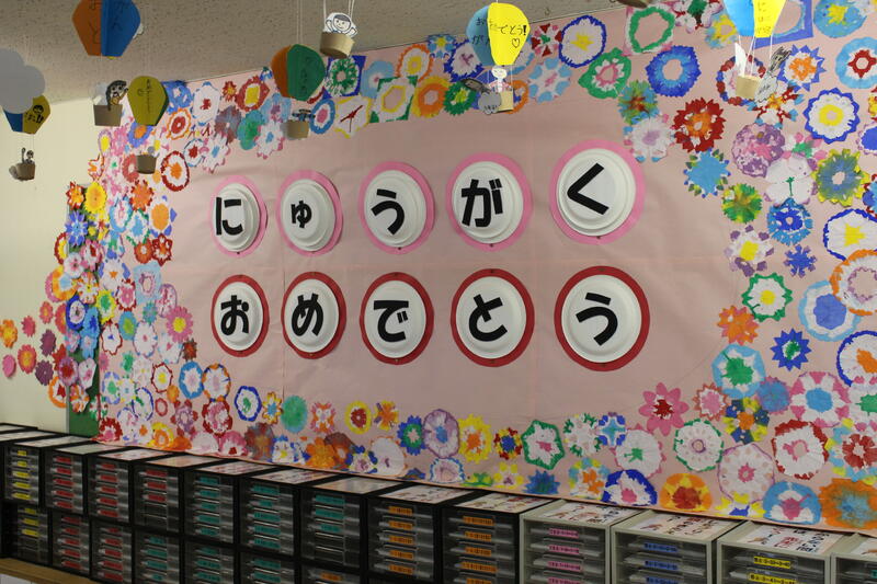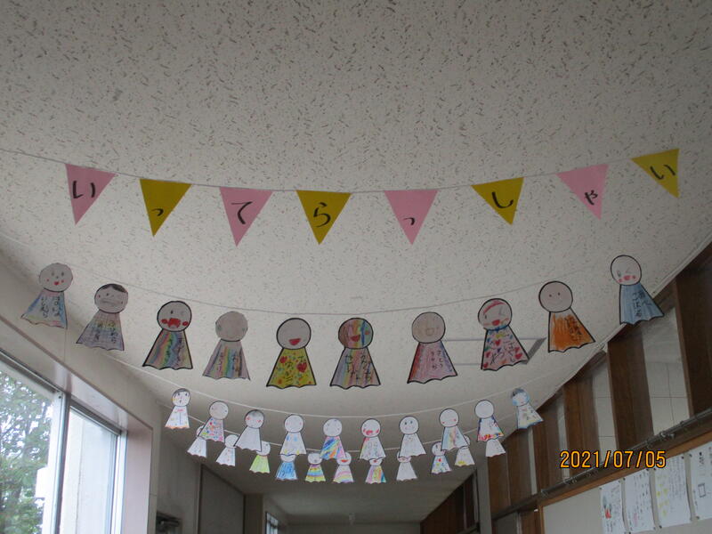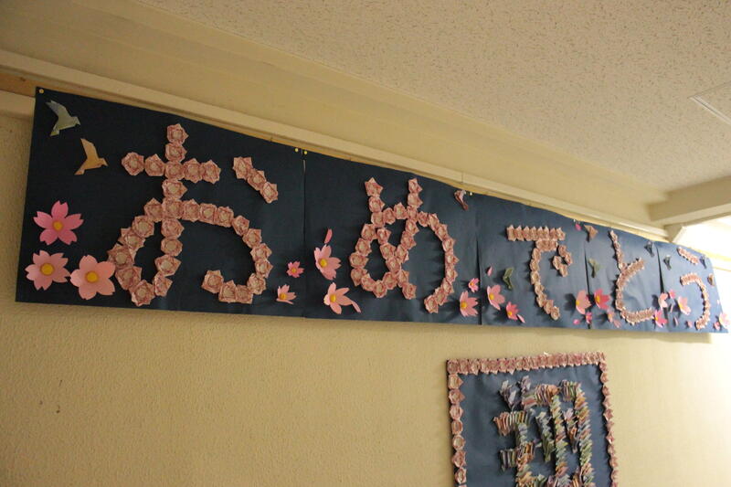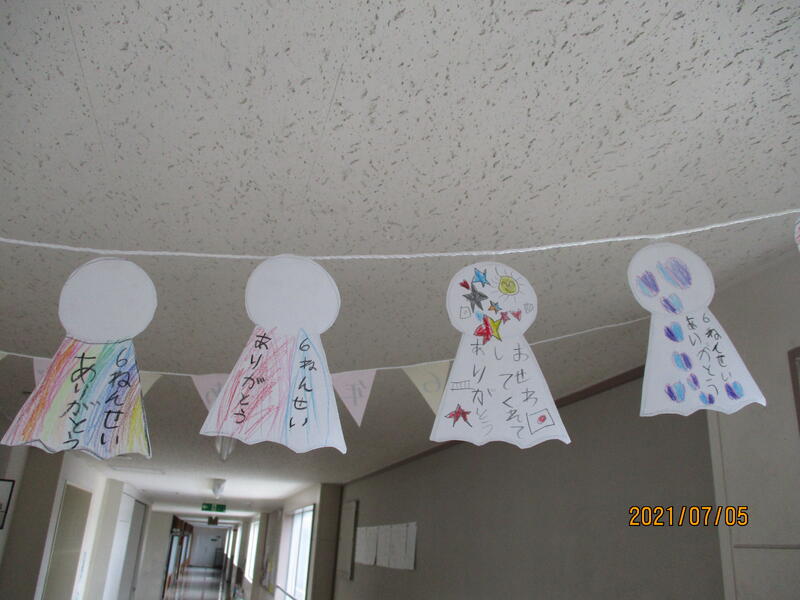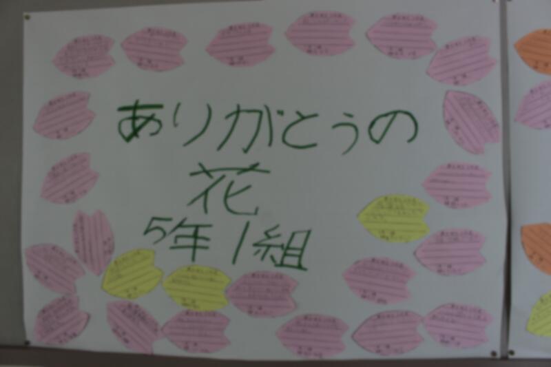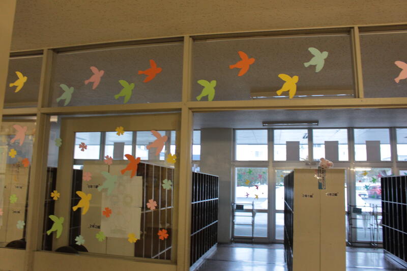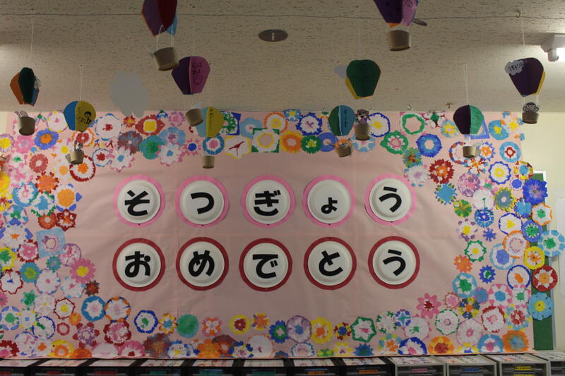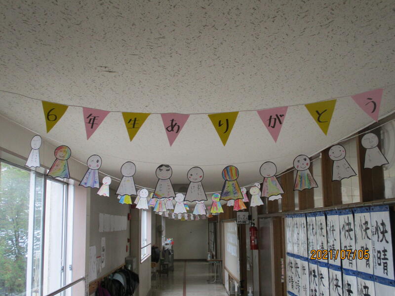各学年が卒業生へお祝いの校内装飾をつくりました。ご覧ください。