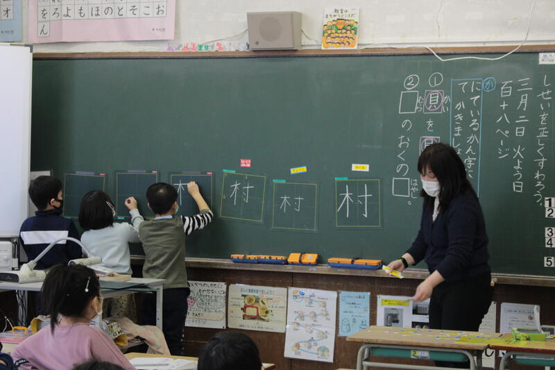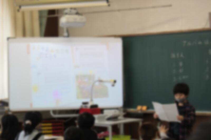 1年生が、国語の時間に教科書を音読していました。「はなのみち」というお話しです。教科書を机に立てて持ち、背筋を伸ばして音読していました。みんなの声もそろっていました。