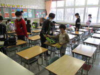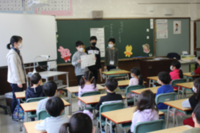 6年生による「1年生のお世話活動」が始まっています。朝、教室にやってくる1年生を「おはよう」と迎える6年生。勉強道具を机に入れるのを手伝ったり、手洗いの大切さを教えたりもしています。朝の会では「学校クイズ」や「紙芝居」を披露し、1年生が1日も早く学校に慣れるよう、工夫してお世話活動をしています。