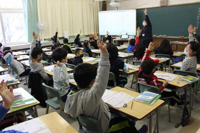 2月に70台の児童用タブレットが入りました。子どもたちは様々な場面でタブレットを活用しています。6年生は修学旅行「小樽自主研修」に向けての調べ学習。5年生はオンライン会議をするためのGoogle meetの練習。子どもたちはすぐに使い方に慣れ、楽しんで学習に取り組んでいました。