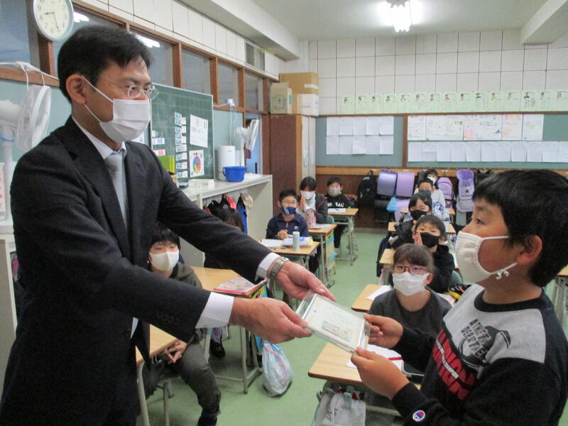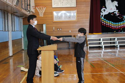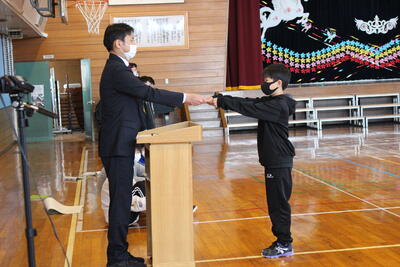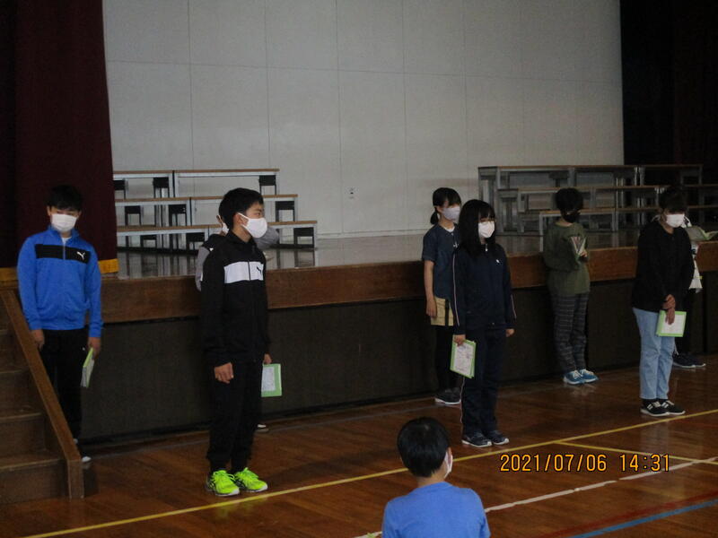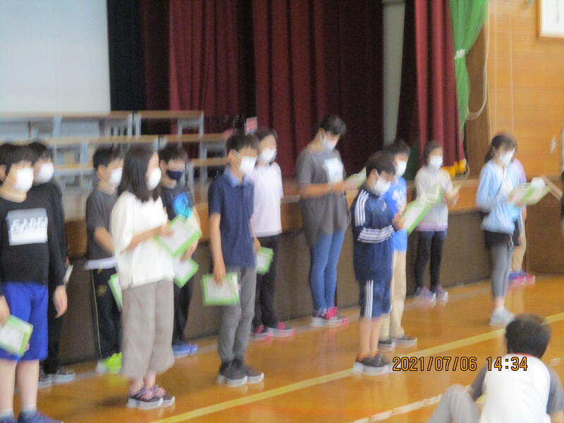 本日、テレビ放送にて前期終業式を行い、前期のがんばりを写真で振り返りました。担任の先生からは子どもたちへ「あゆみ」が手渡されました。「あゆみ」には子どもたちのがんばりやよさが記されています。ご家庭におかれましても、これまでの子どもたちのがんばりを振り返っていただき、後期に向けての励ましをお願いいたします。