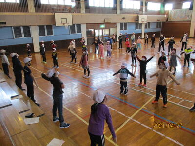 今日紹介する写真は、1年生がよさこいを練習している場面です。写真からも子どもたちの成長が感じられます。体をいっぱい使った表現したり、素早く整列したり、話を集中して聞く力も高まっています。
