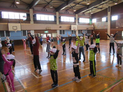 信濃小では4年生を「ノースリーダー」と称しています。1年生から4年生の教室がある「北」校舎における最高学年、リーダーだからです。昨日は、4年生が1年生にラジオ体操を解説もまじえて丁寧に教えていました。