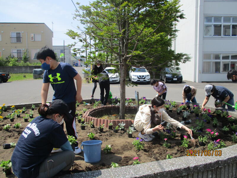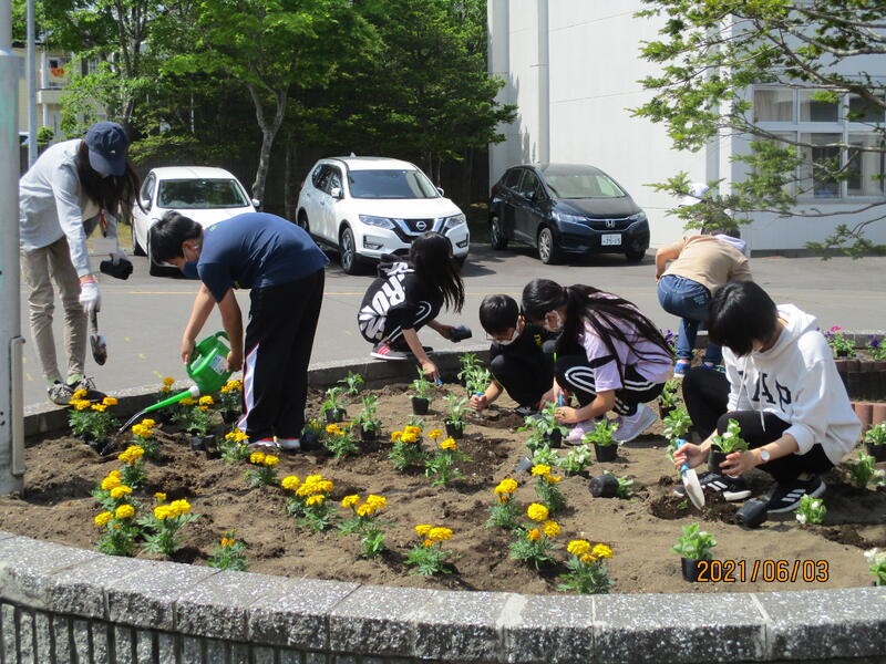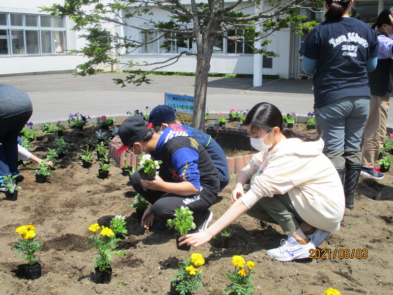 昨日、玄関前の花壇に花苗を植えました。6年生がボランティアグループを結成し、中休み。昼休み、放課後に分担して作業を進めました。これから、色とりどりの花がみんなの目を楽しませてくれることでしょう。