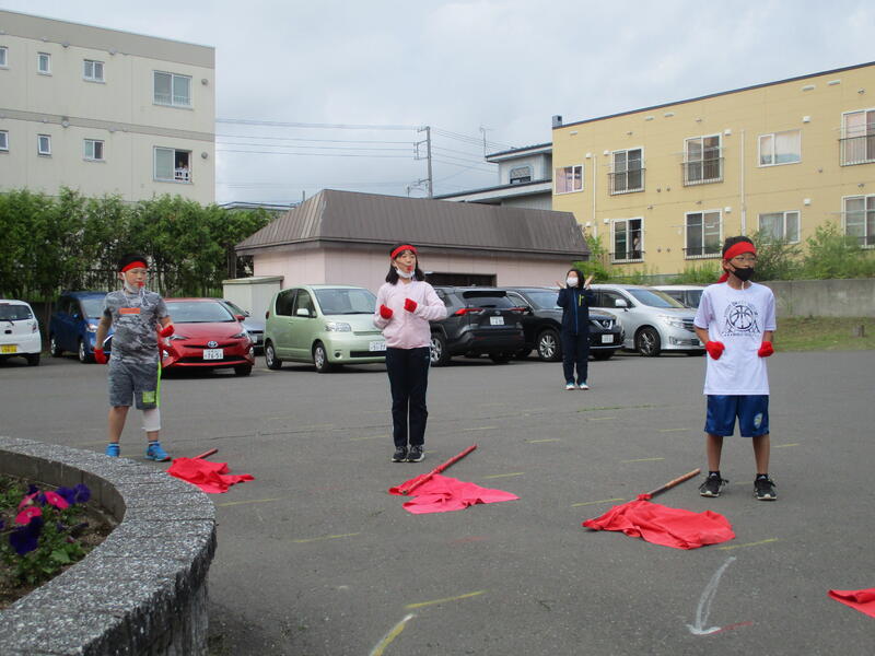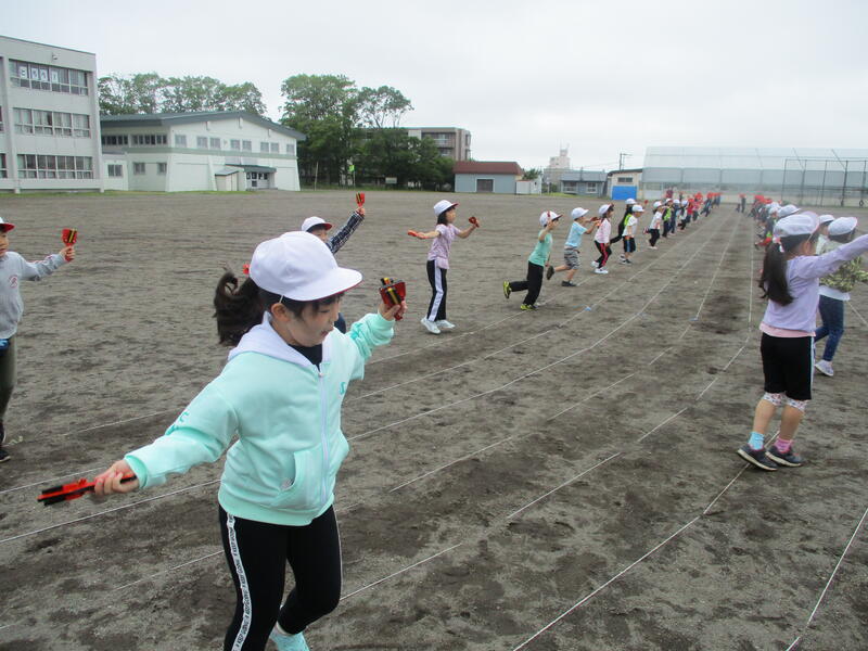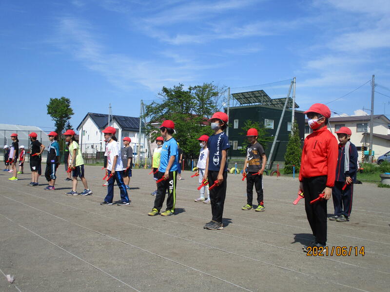 6月26日(土)の運動会に向け、特別時間割がはじまりました。4年生は、グラウンドでよさこいソーランの練習を行いました。練習の合間に水分補給もしながら、力強く踊っていました。