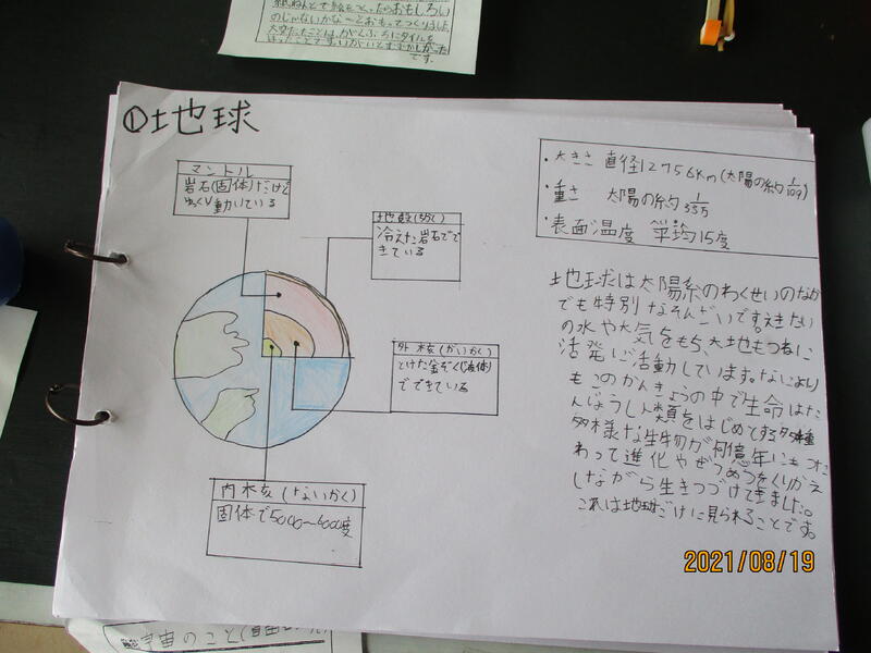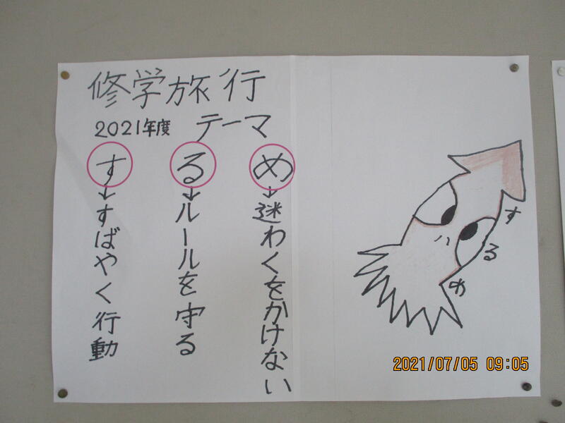 そして、6年生がつくった「修学旅行のしおり」。1文字1文字が丁寧に書き込まれていて、子どもたちの一生懸命さ、修学旅行への期待が伝わってきました。7月8日(木)・9日(金)は、よい旅になることでしょう。
