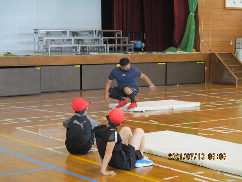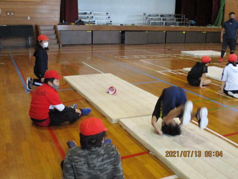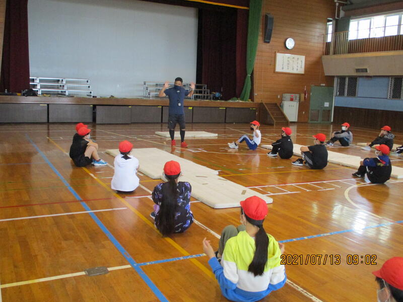 本日、小中連携の取組として、千歳中学校の金山先生と石本先生をお招きし、6年生を対象に体育の出前授業を行っていただきました。中学校の先生を前に、子どもたちは緊張気味でしたが、「後転がうまくなるコツ」をしっかり聞き、自分のものにしようと熱心に練習に取り組んでいました。