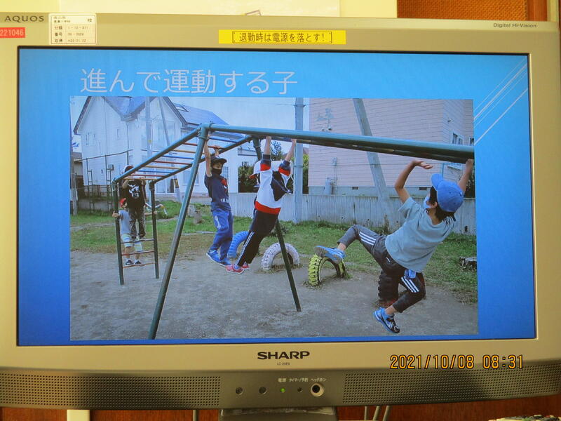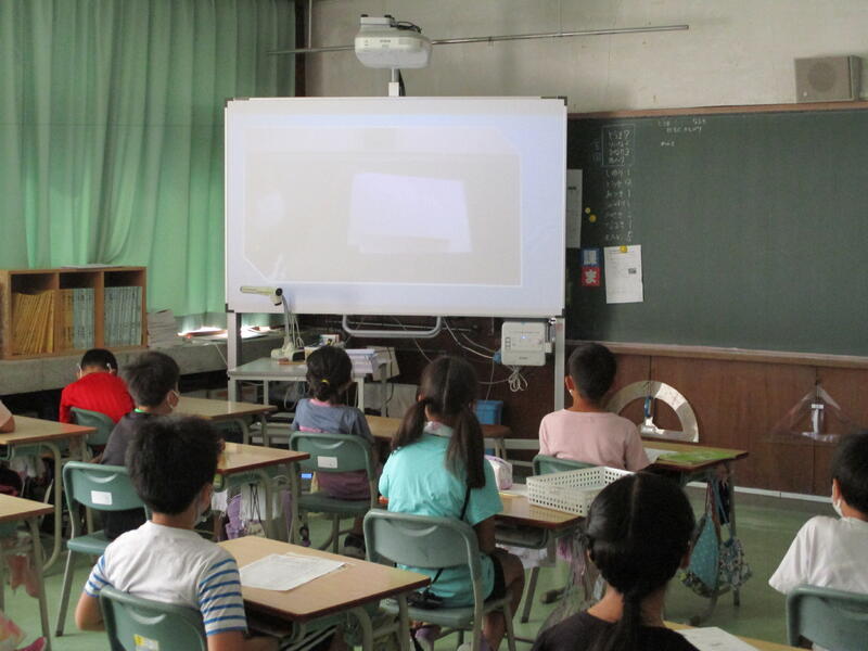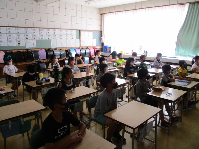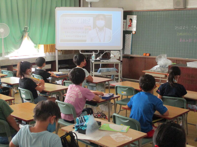 夏休みが終わり、子どもたちが元気に登校してきました。夏休みの作品や上靴を両手に抱え、「おはようございます」と元気な声を響かせていました。本日、テレビ放送で「夏休み明け集会」を行いました。