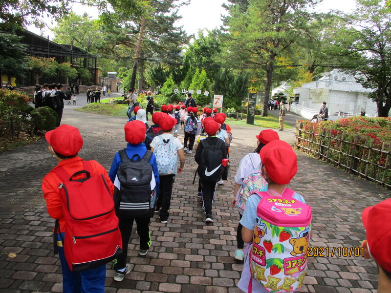 10月1日(金)1年生が円山動物園に行き、社会見学をおこないました。当日は爽やかな秋晴れとなり、たくさんの動物たちを存分に見ることができました。ご家庭におかれましては、持ち物やお弁当等の準備をしていただき、感謝いたします。