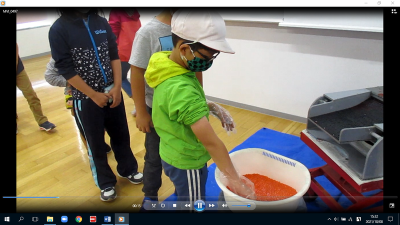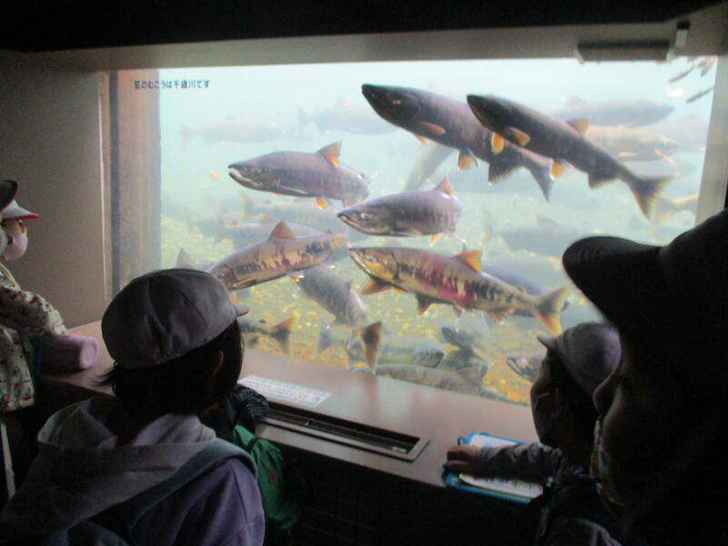 10月5日(火)2年生が「さけのふるさと館」に行きました。館内の展示水槽や水中観察ゾーン、インディアン水車の見学、そして、サケの採卵体験も行いました。この日は、たくさんのサケが遡上する様子も見ることがっでき、子どもたちからは歓声があがっていました。