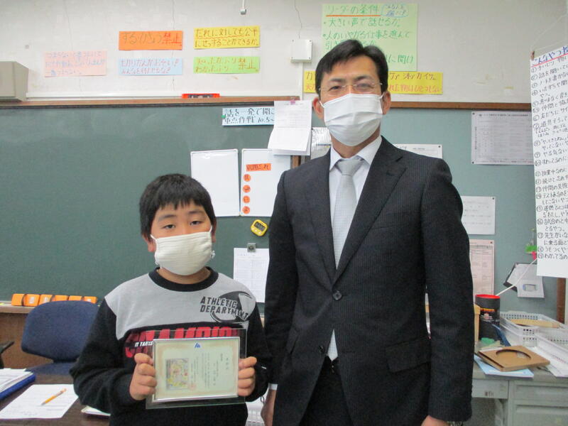 文部科学省、社団法人日本PTA全国協議会主催の「楽しい子育て全国キャンペーン 三行詩」に作品を応募した、4年2組海谷 滉君の作品が優秀賞に選ばれました。