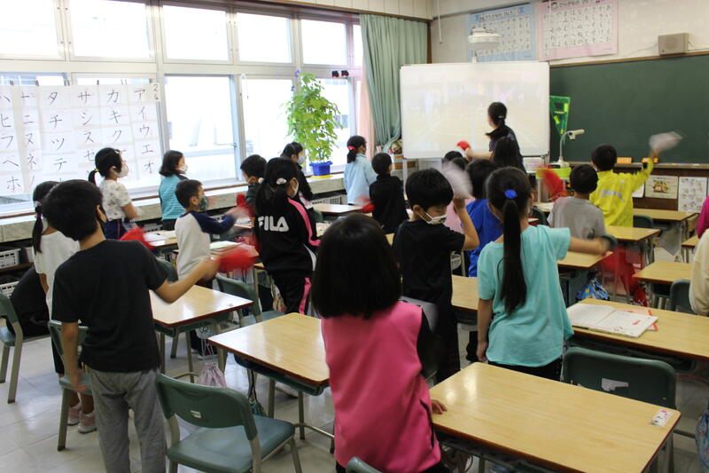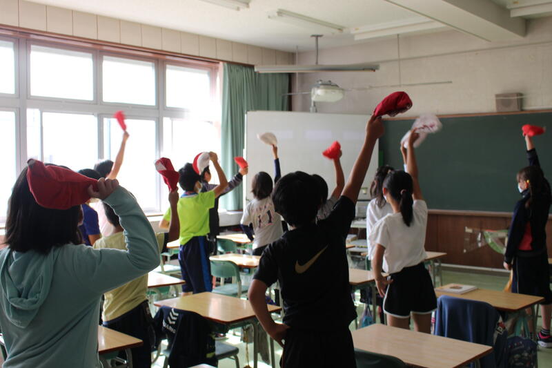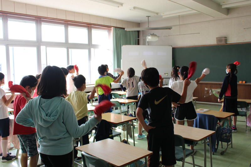 朝学習の時間に、応援合戦の練習を行いました。来週からいよいよ運動会です!