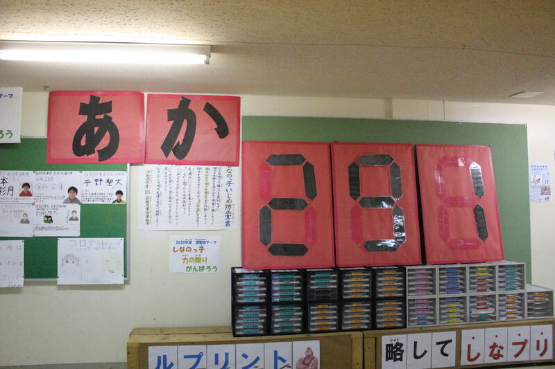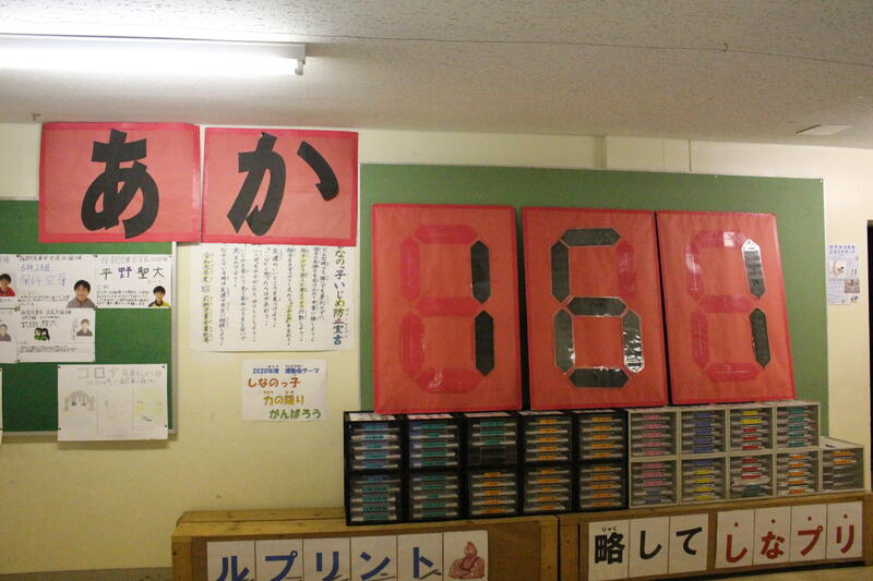 今年は、玄関前に得点板を掲示します。