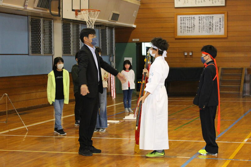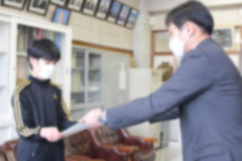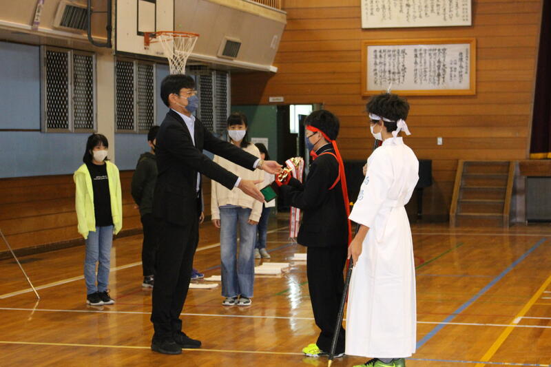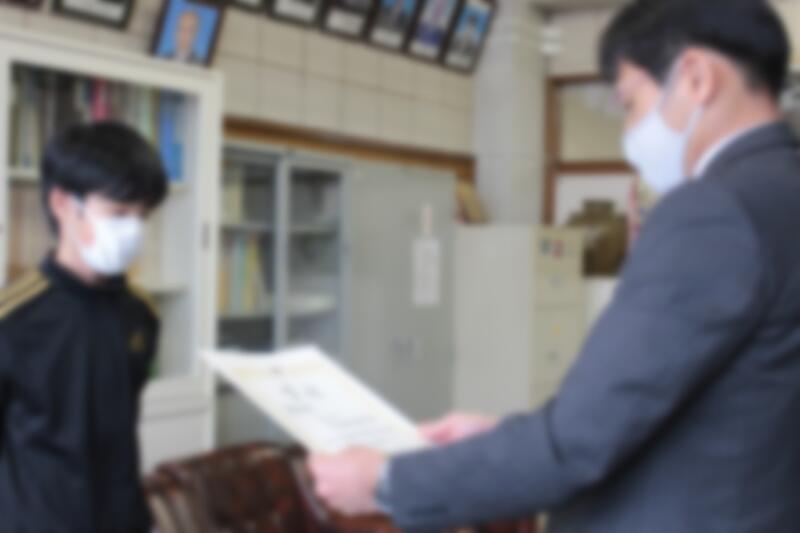 校長室で表彰式を行いました。