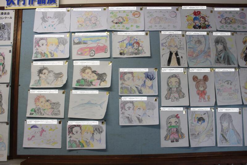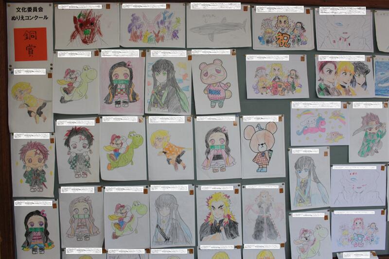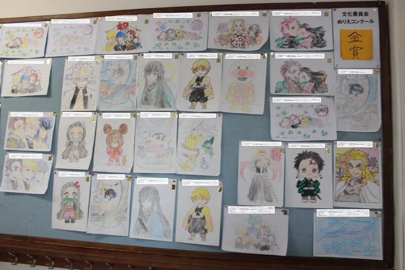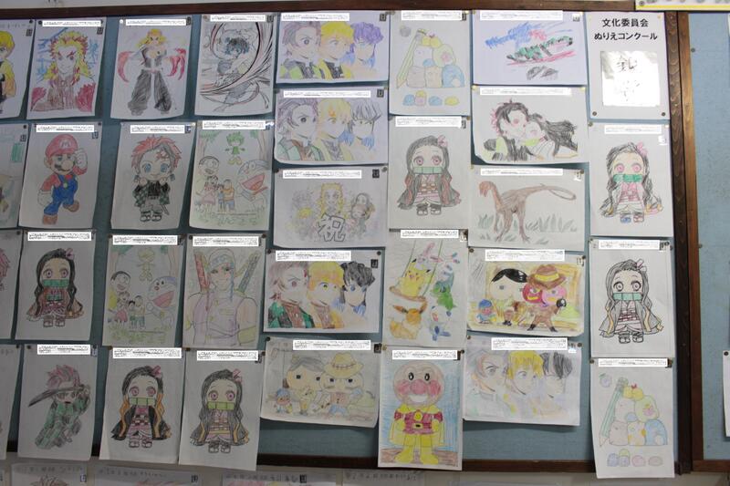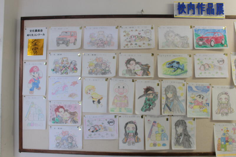 11月に行われていた、文化委員会の企画「ぬりえコンクール」の作品が掲示されています。