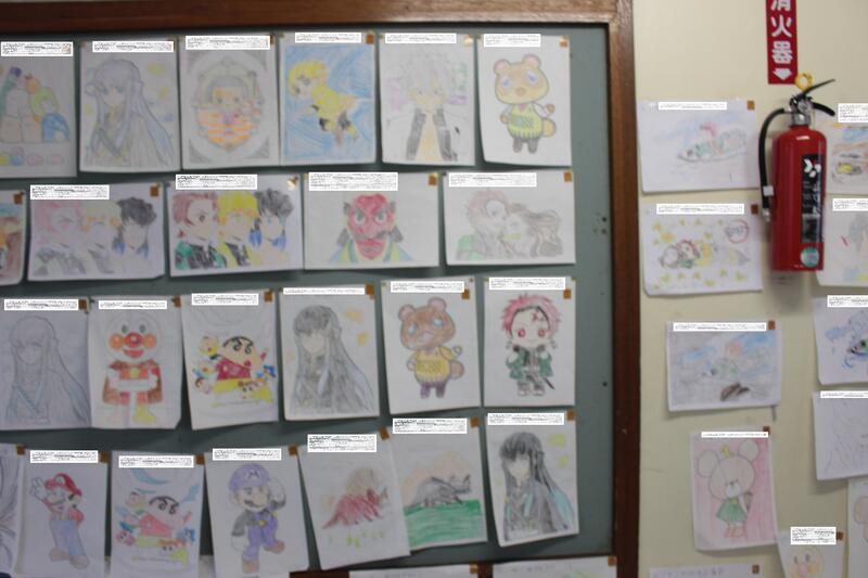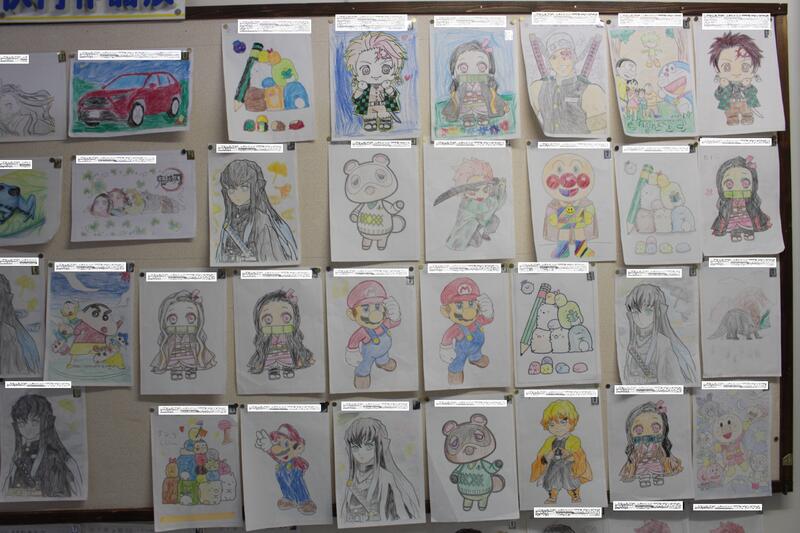 先日募集していた、ぬりえコンテストの作品が掲示されています。