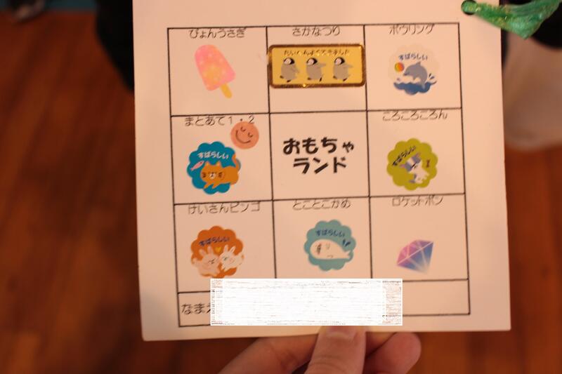8つのおもちゃがあり、1周するとシールが揃います。