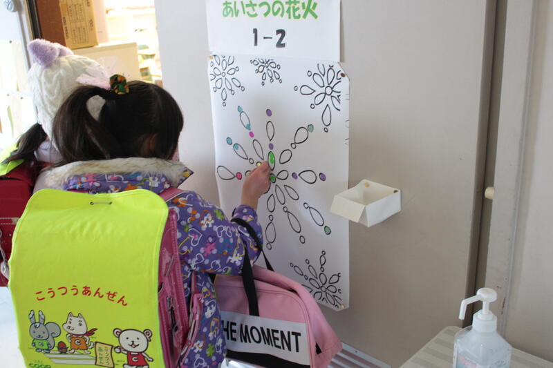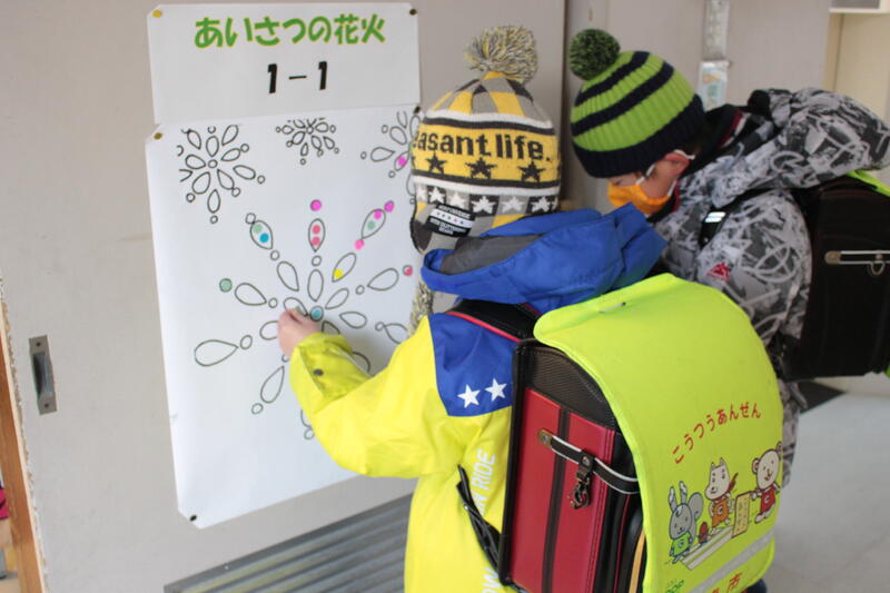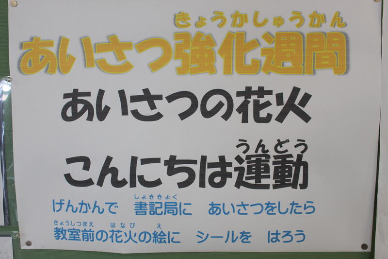 今週は、あいさつ強化週間です。あいさつをした人は、学級にある花火の絵にシールを貼ります。みんなしっかり挨拶しているので、すぐに綺麗な花火ができそうです。