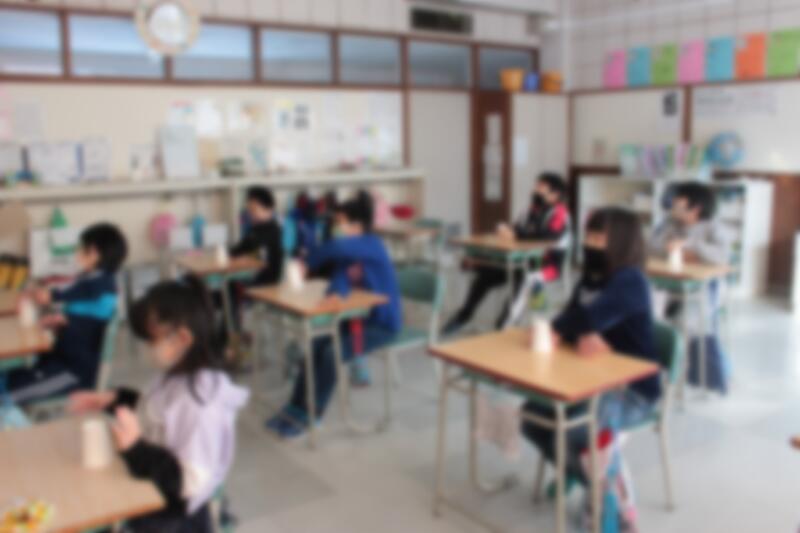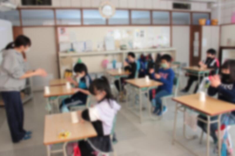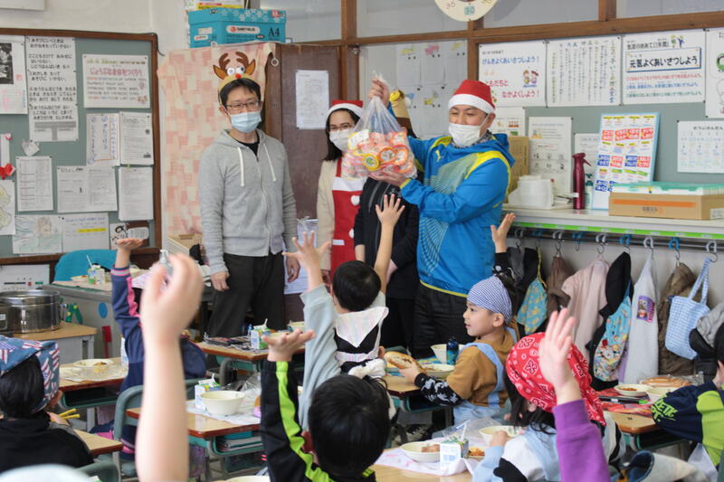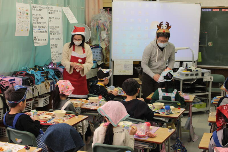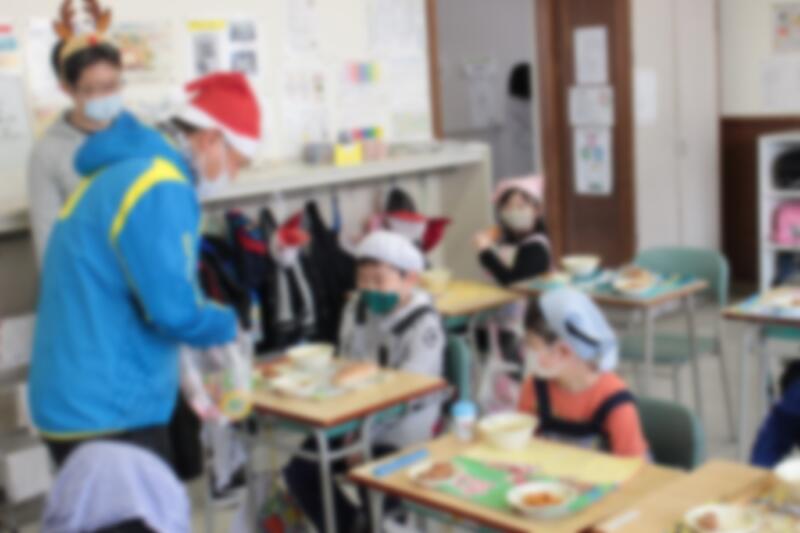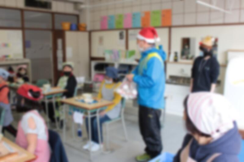 今日の給食は、クリスマスメニューでした。カップデザートがついてきました