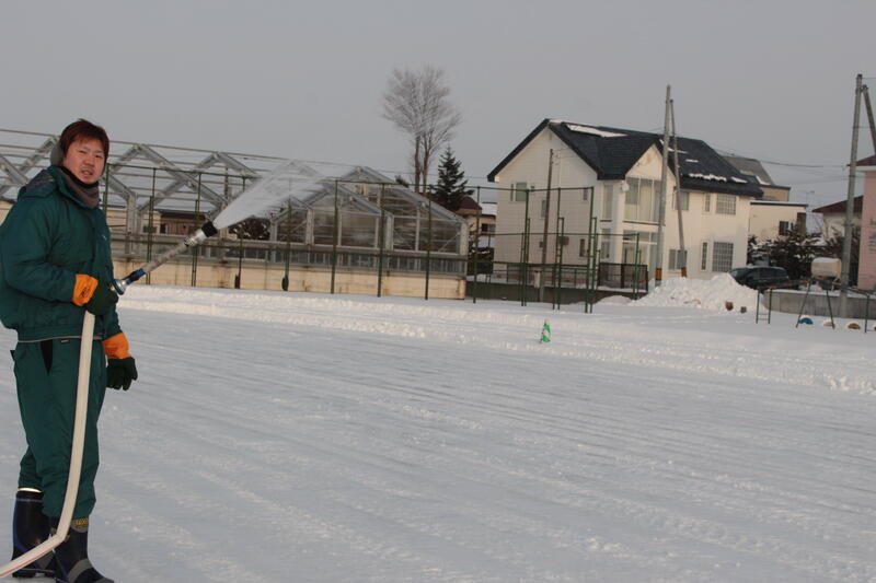 今年度も信濃小のスケートリンクの設営・管理は、「緑建工業株式会社」様が担当してくださいます。リンクの設営をする上では、厳しい天候が続いていますが、気温や降雪量をみながら、夜遅くにも水を撒く作業を続けて下さっています。寒さは身体にこたえますが、スケート授業ができるよう、リンクの完成を祈るばかりです。