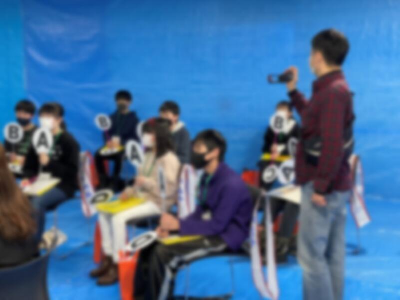 アイマスクをした状態で競技を行います。見えない状態なので、声のやりとりがとても大切でした。