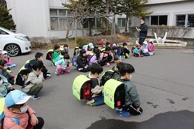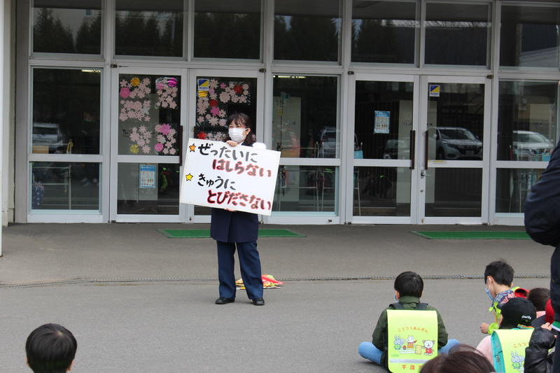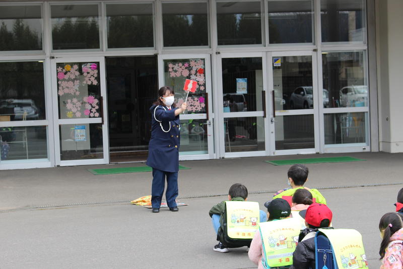 今日は初めての下校でした。交通安全指導員さんに交通安全についてお話ししていただきました。