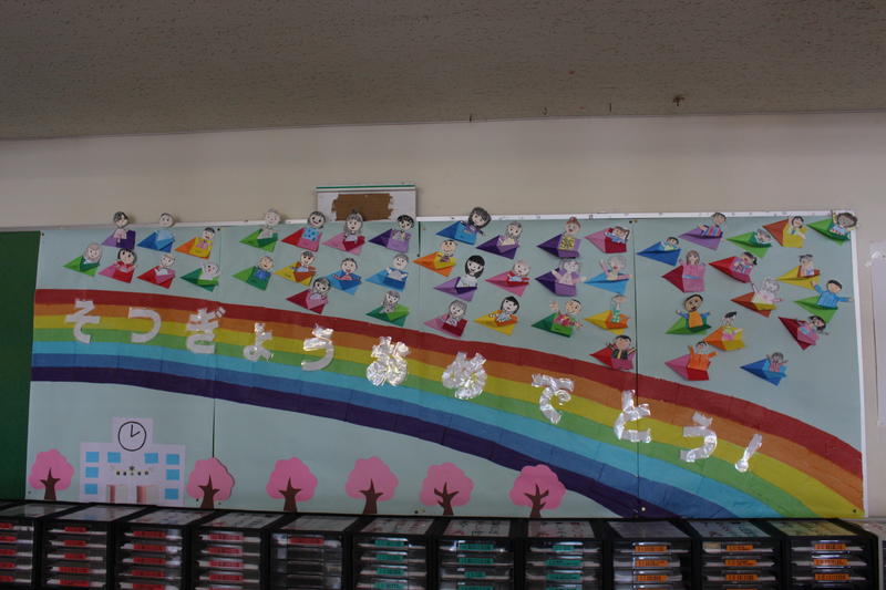 来週の月曜日から新学期が始まります。入学式・始業式に向けた装飾を行いました。