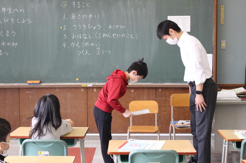 一人ひとりにあゆみを手渡しました。今年度の頑張りを振り返り、来年度に向けての目標を見つけてほしいと思います。