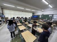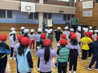 不審者が学校へ侵入した場合の訓練をしました。今回は北校舎の3階の4年2組に不審者が入ってきた場合を想定した訓練を実施しました。訓練後、千歳警察署の方からご助言を頂き、学級に戻って振りかえりをしました。