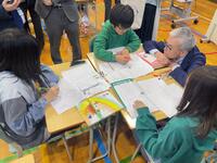 平和集会に向けて6年生が1年生教室にきてくれて、鶴の色塗りなどをサポートしてくれました。