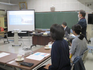 給食試食をはさみ、前期教育活動の報告をさせていただきました。
