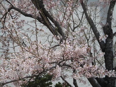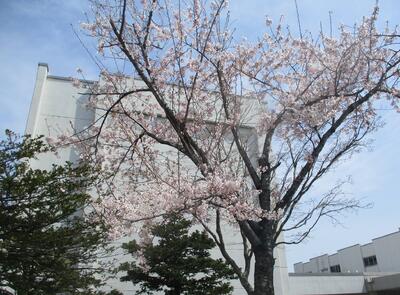 校舎前の桜も、ほぼ満開です。
