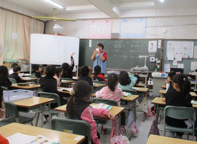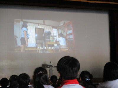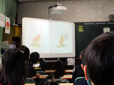 1・2年生の教室では「読み聞かせ」が行われていました。