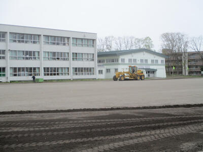 大型重機等で丁寧にグラウンドの凸凹を均していただきました。