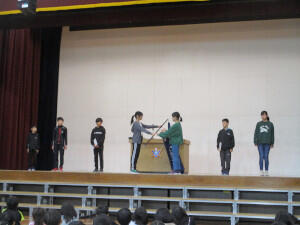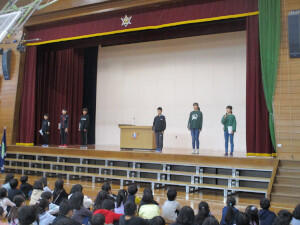 続いて、前期児童会長から後期児童会長へ「児童会旗」が引き継がれました。