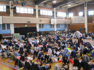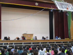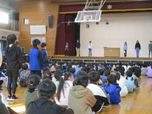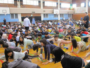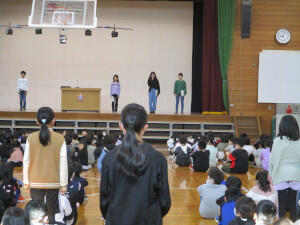 前日の後期始業式に引き続き、全校児童が体育館に集まりました。