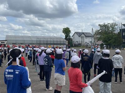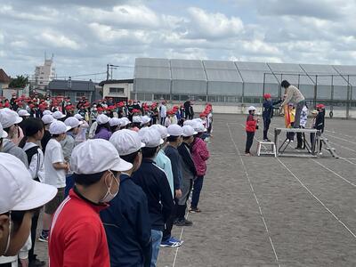 運動会の全体練習では、開会式の流れを確認しました。