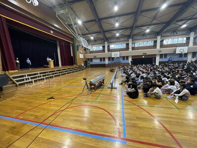 新たな目標に向けて後期スタート1015 投稿日時 : 2024/10/15 編集長 カテゴリ: 本校の教育目標「みんないっしょに 笑顔でチャレンジ 信濃っ子」の達成に向けて後期スタートです。 始業式では「自分が笑顔になれる目標」、「なかまが笑顔になれる目標」を設定することをお願いしました。