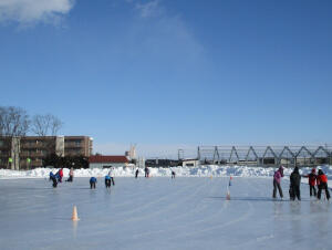 多少風が吹く中ですが、スケート学習に元気よく取り組む子供達です。