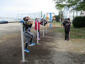 グラウンドの鉄棒・遊具がリニューアルされ、