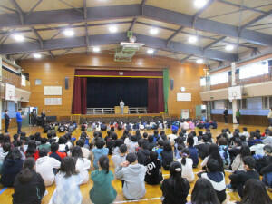さて、本日1校時に「冬休み前集会」を開催しました。