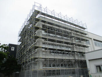 徐々に足場で覆われてきた北校舎。