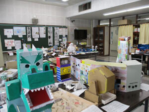 子供達の創意・工夫に満ちた作品がところせましに展示。