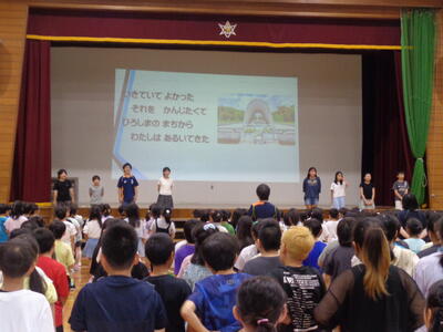 平和集会0718 投稿日時 : 07/18 編集長 カテゴリ: 各クラスで平和について考えてきました。図書館司書さんから、戦争を考える読み聞かせがあり、学級の代表が全校の前で自分にできること等を発表しました。
