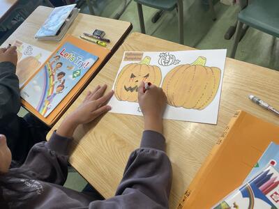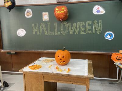 外国語「Happy Halloween」1025 投稿日時 : 2024/10/28 編集長 カテゴリ: 外国語、外国語活動の時間はハロウィンに合わせて、ハロウィンビンゴやの楽しい活動を行いました。かぼちゃのお化け、ジャックオウランターンのイラスト描き等もしました。