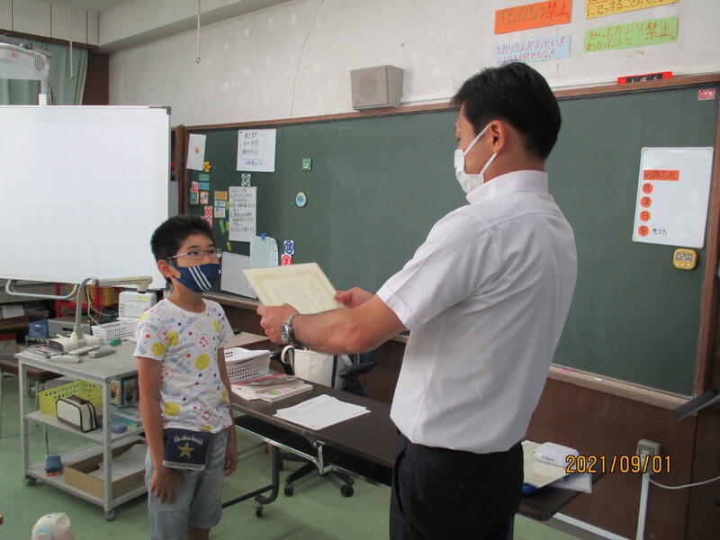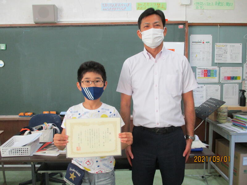 文部科学省、社団法人日本PTA全国協議会主催の「楽しい子育て全国キャンペーン 三行詩」に作品を応募した、4年2組海谷 滉君の作品が優秀賞に選ばれました。