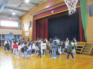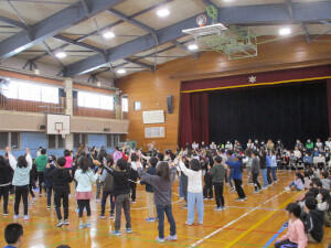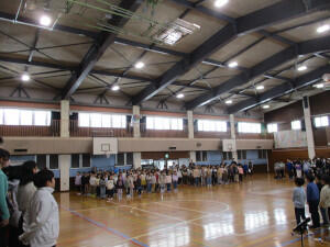 一足早く、お祝いムードに包まれた体育館。