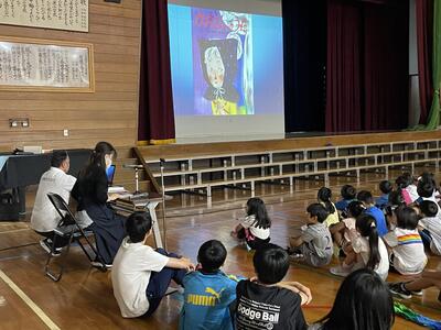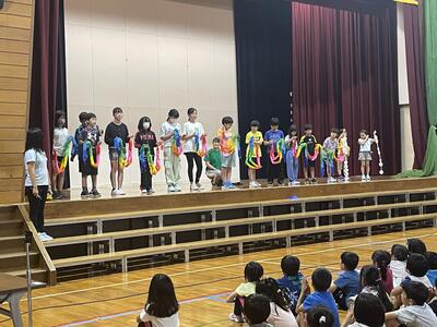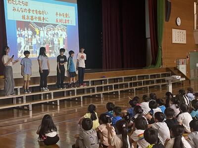 戦後79年を迎えます。全校平和集会を行いました。事前に1年生は鶴の絵柄に塗り絵、2年生以上は折り鶴をつくりました。集会では、図書館司書よる広島原爆に関わった「かあさんのうた」の読み聞かせを行い、各学年の代表が平和について考えたことを発表しました。