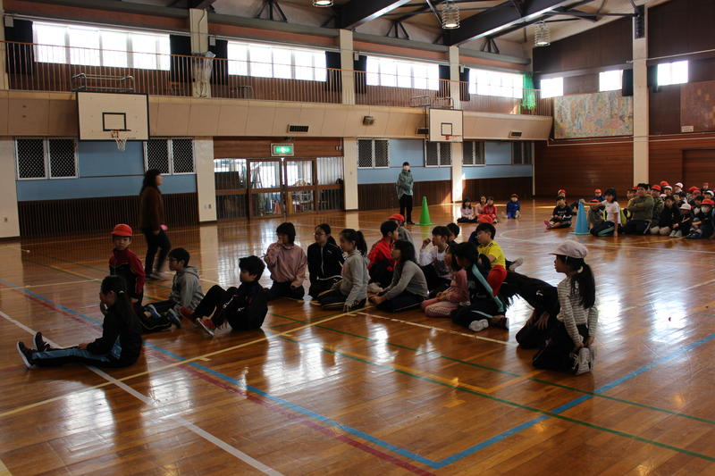 保護者が説明を受けている間、1年生は新1年生と「なかよしこうりゅうかい」を行いました。