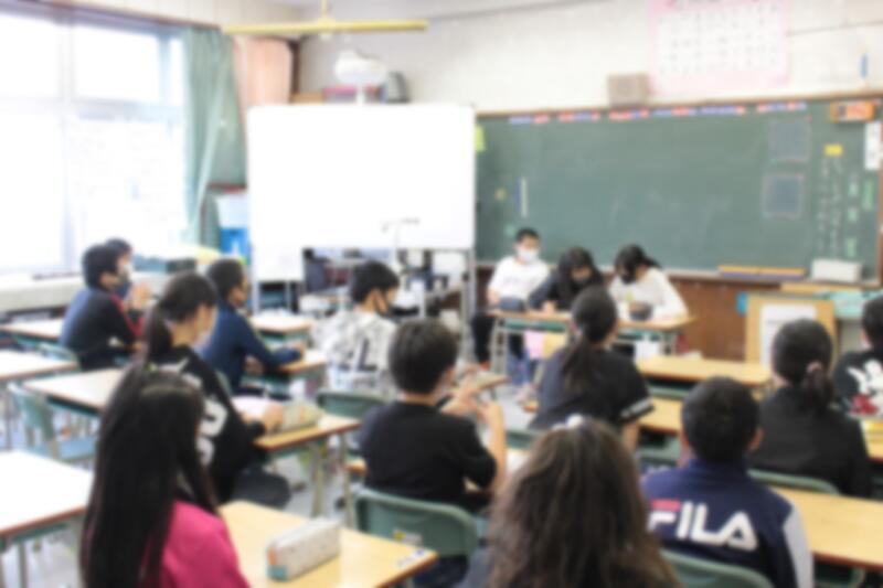 修学旅行の報告会を行い、5年生や保護者のみなさんに修学旅行で学んだことを発表しました。